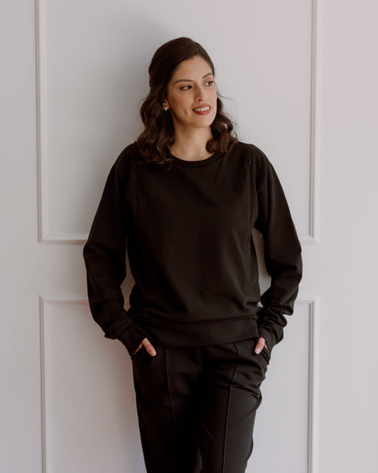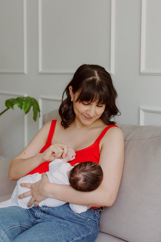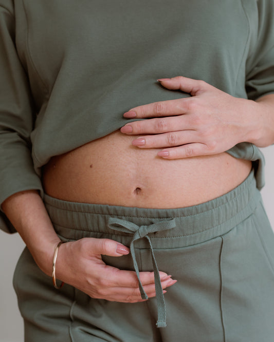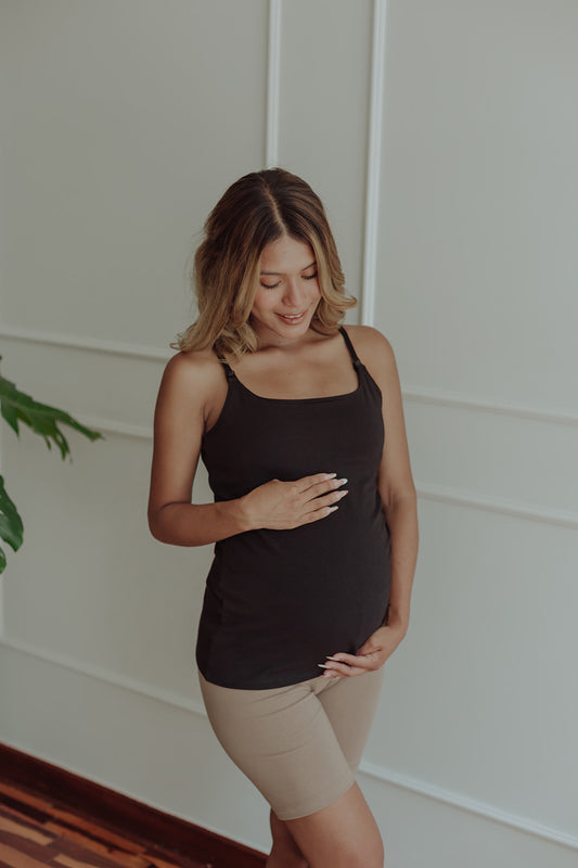 Prendas diseñadas con el ajuste perfecto para acompañarte durante y después del embarazo con aberturas invisibles para una lactancia libre.